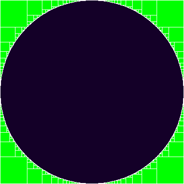 the areas on the sides of the square are a bit peculiar, so i'll take them on their own first. we'll only need to look at an eighth of the area between the square and circle rid of its four bigger squares inscribed within that area. i will arbitrarily choose the eighth that is both vertical and adjacent to the right side. the essential function to generate every square in this specific eighth happens to be the following :